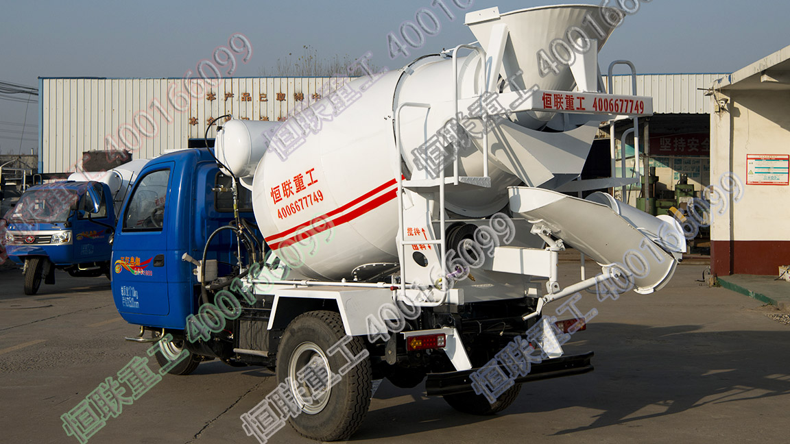 我公司生產(chǎn)的三輪車(chē)攪拌車(chē)采用五征汽車(chē)集團(tuán)的最高配置工程車(chē)三輪車(chē)底盤(pán),配置氣剎、斷氣剎、鋼絲胎、循環(huán)球方向、加重大架、前置三減、暖風(fēng)、萊動(dòng)高品質(zhì)發(fā)動(dòng)機(jī)等高等配置。液壓系統(tǒng)采用國(guó)內(nèi)高品質(zhì)4方液壓系統(tǒng),性能穩(wěn)定,帶氣壓供水清洗方便,氣剎斷氣剎在工程施工中更安全,帶暖風(fēng)豪華駕駛室,駕駛舒適,視野好操控性能好于同類(lèi)型三馬車(chē)。另外我公司攪拌車(chē)上裝可以直接攪拌干料,把沙子,石子,水,水泥等原材料按比例送到攪拌罐里就可以代替攪拌機(jī)使用,攪拌的混凝土不離析,不分層,完全滿(mǎn)足各種混凝土施工標(biāo)號(hào)要求。