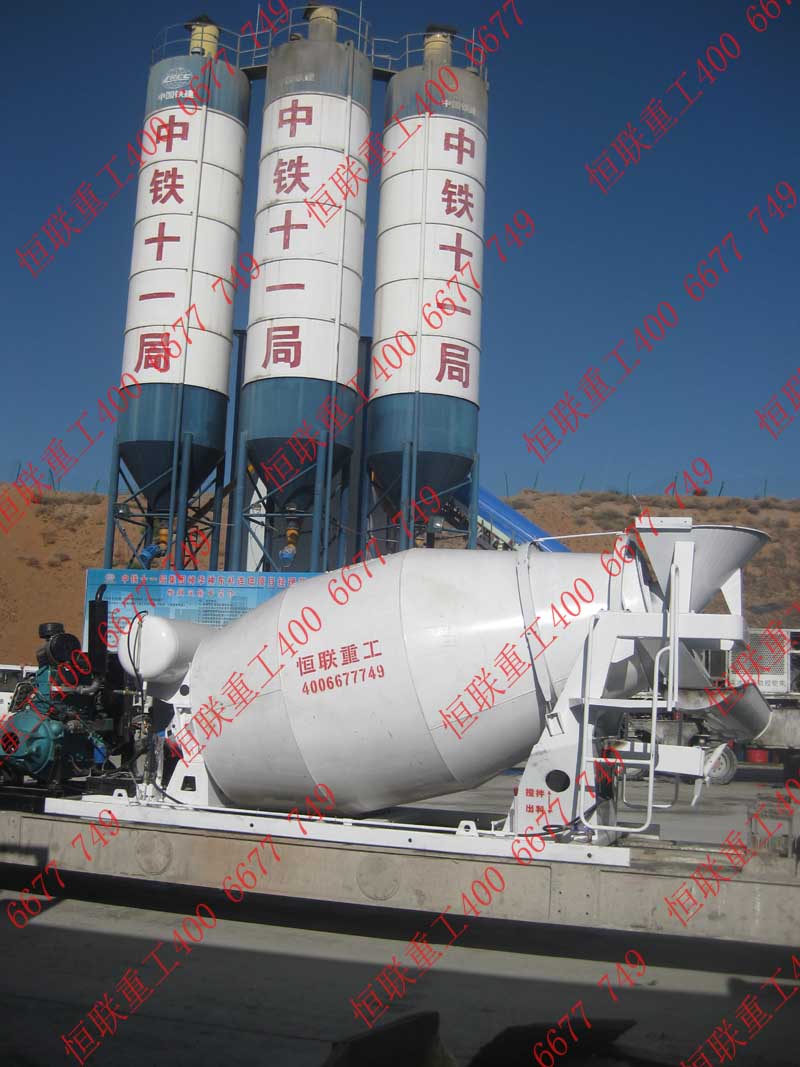 水泥攪拌車(chē)加裝在無(wú)軌膠輪車(chē)上