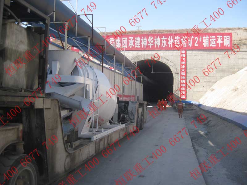 無(wú)軌道水泥攪拌車(chē)駛?cè)朊旱V隧道施工