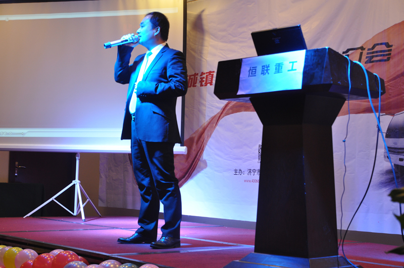 恒聯(lián)重工總經(jīng)理陳守偉向攪拌車用戶致新年祝詞