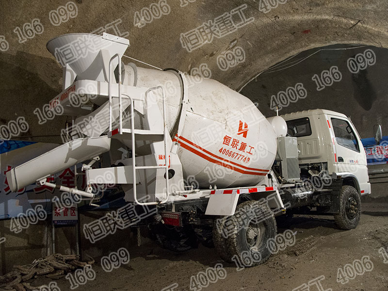 2立方小型攪拌車在隧道礦井內(nèi)部