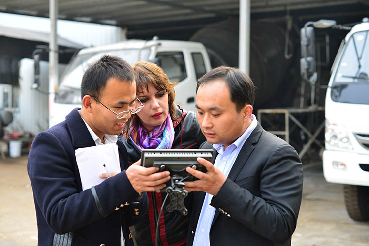 俄羅斯客戶仔細(xì)查看并詢問攪拌車配件