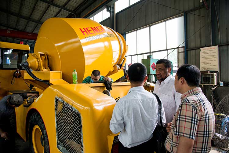 沙特客戶來恒聯(lián)重工考察自上料水泥攪拌車
